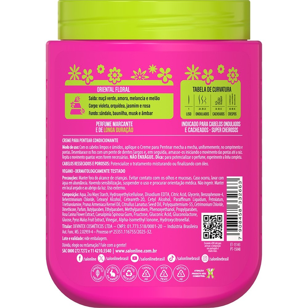 Com perfume floral de alta fixação, proporciona frescor envolvente, maciez vibrante e perfumação duradoura para os cabelos