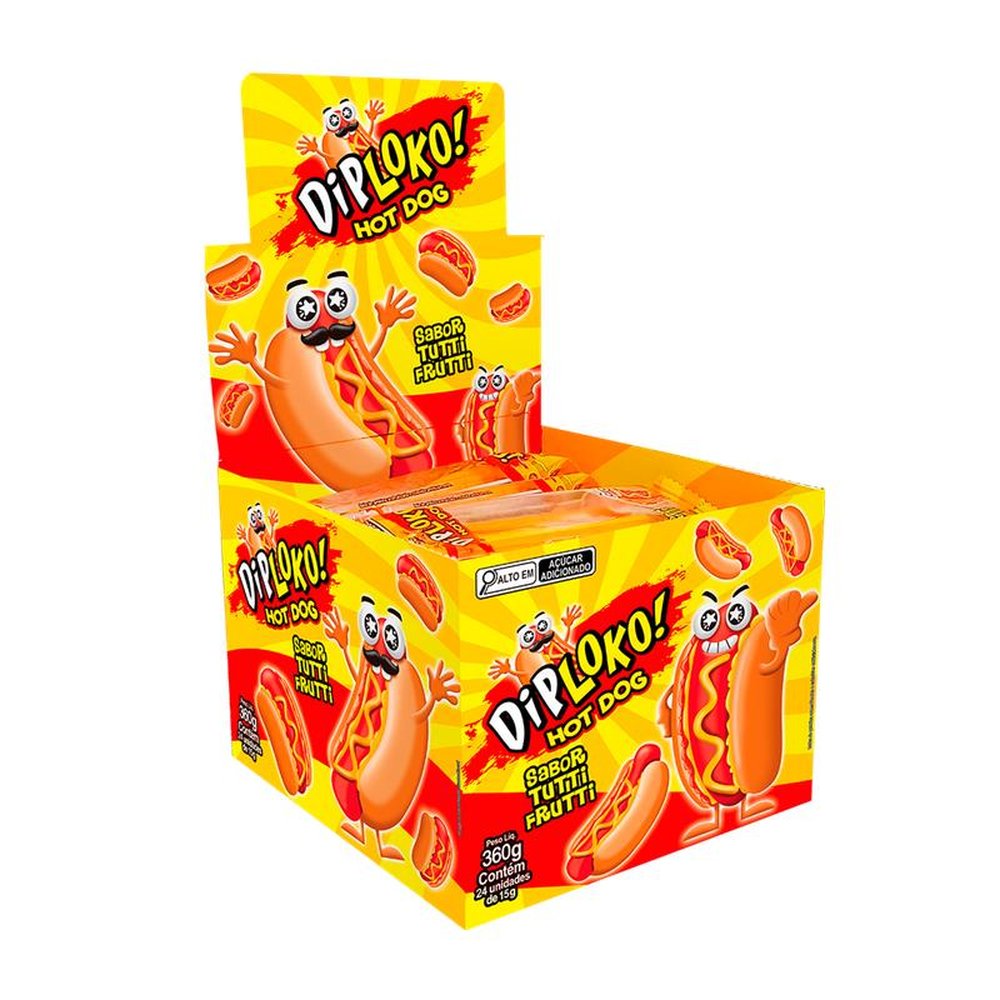 Bala De Gelatina Diploko Hot Dog Sabor Tutti Frutti 15G Caixa C/ 24 Un