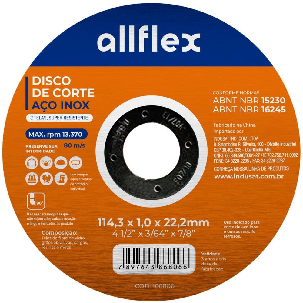 Disco Corte Allflex 4.1/2 115x1,0x22,2 Aço/Inox 10x1