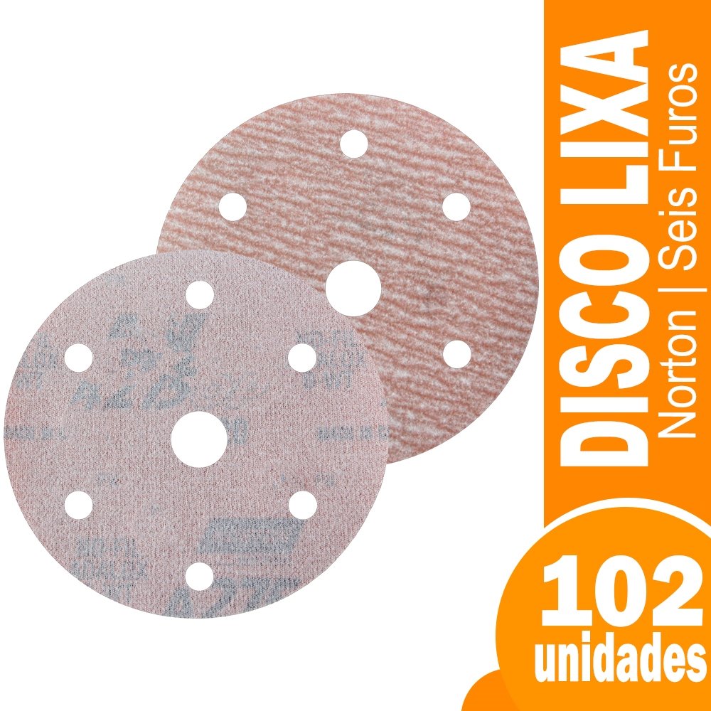 102 Discos Lixa Seco Norton A275 P220 152mm com 6 Furos