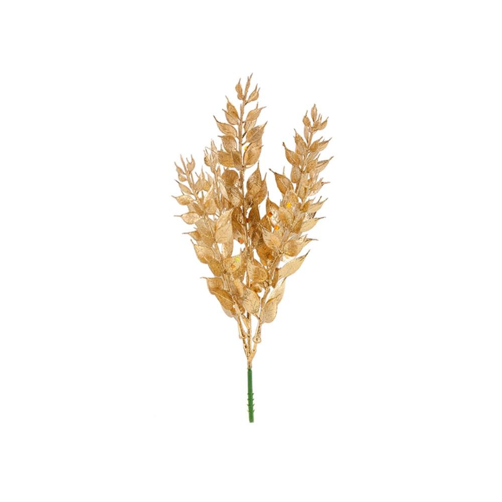 Enfeite Natal Galho Multi Folhas 28Cm Dourado
