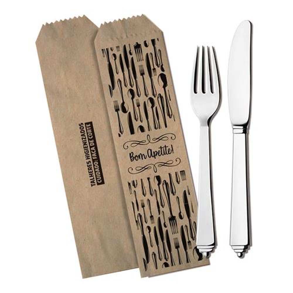 Envelope Para Talher com 25Cm x 7Cm Papel Kraft 40 GramasImpresso Bom Apetite
