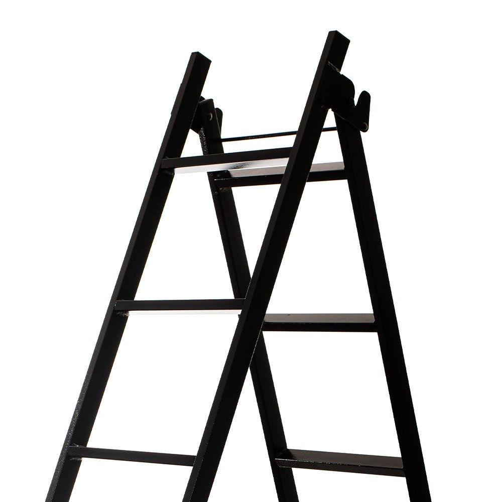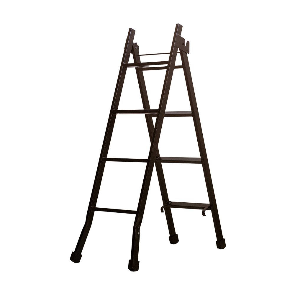 Escada extensiva 3 em 1, fabricada em metalon 4x2cm, bitola de 0,90mm, pintura eletrostática preta, possui 4 degraus.