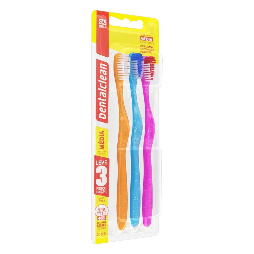 Escova Dental Média Dentalclean Basic Color 3 Unidades