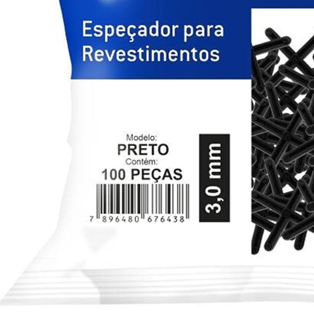Espaçador Cruzeta Pratik para Dilatação Piso 3mm Preto - Embalagem com 100 Unidades