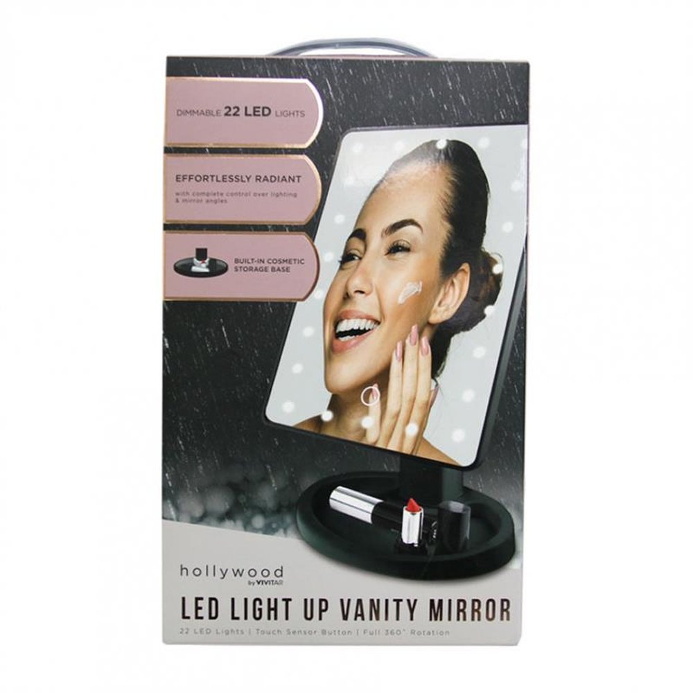 Espelho Hollywood By Vivitar 360° Com 22 Leds E Base Para Maquiagem - Preta