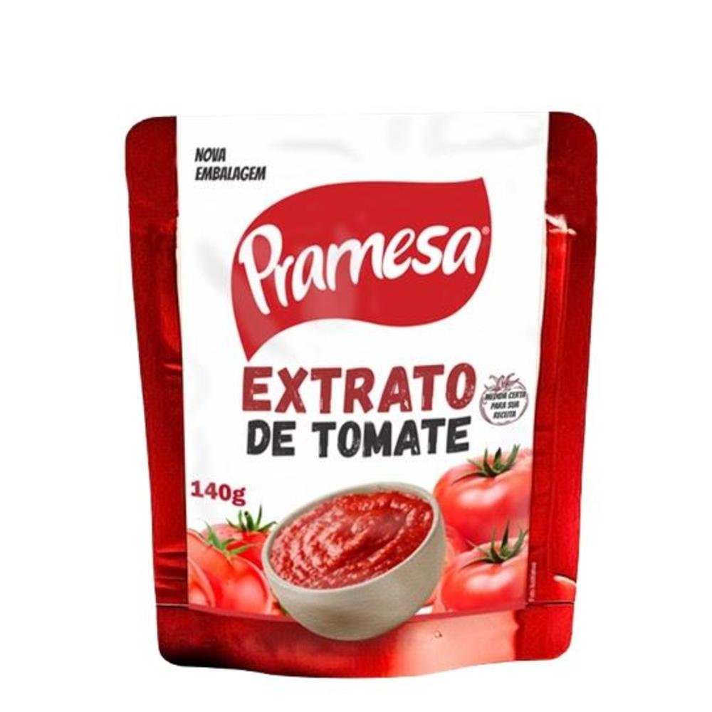 Extrato de Tomate Pramesa concentrado, produzido com tomates selecionados e processados para manter sabor, cor e qualidade. Textura espessa e homogênea, com alto poder de rendimento mesmo em pequenas quantidades. A embalagem pouch de 140g é prática e ideal para consumo doméstico, evitando desperdícios e facilitando o armazenamento após aberto. Indicado para preparo de molhos, carnes, arroz, feijão e receitas rápidas do dia a dia.