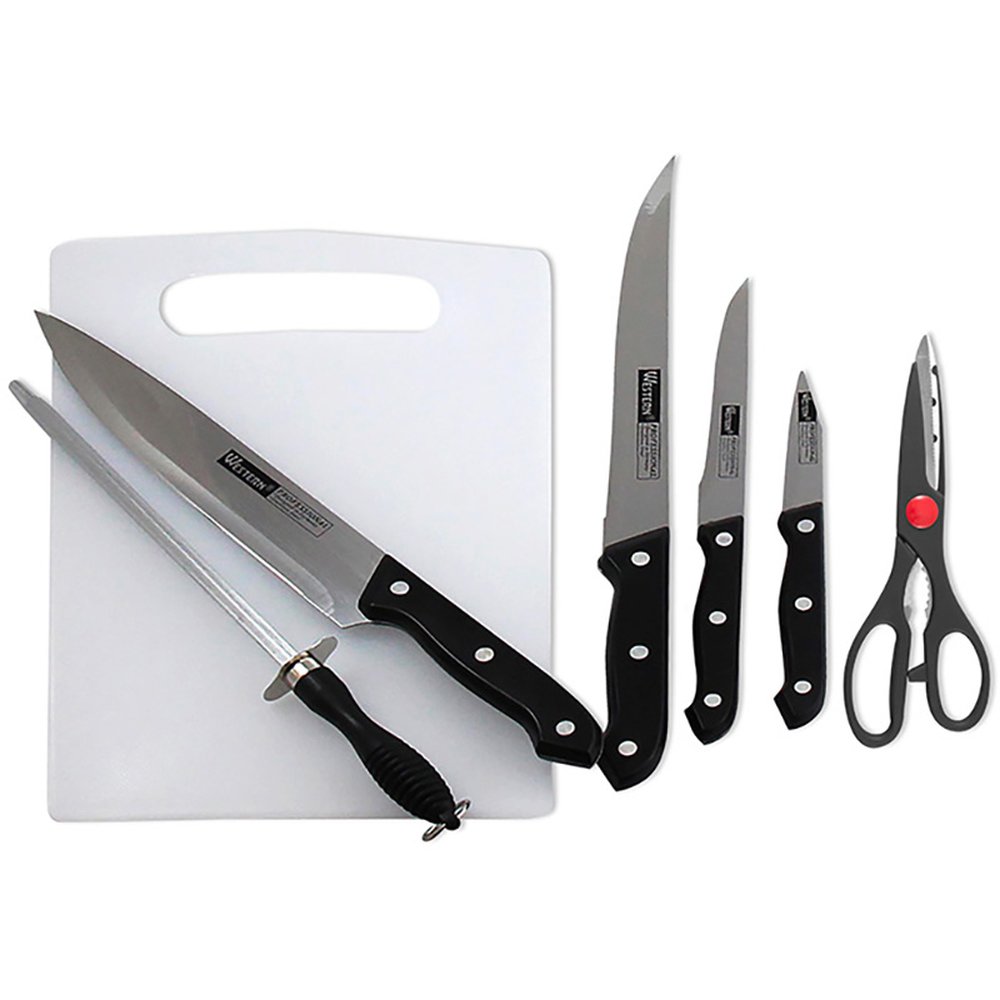 Faca Cozinha Conjunto Cabo Preto 7 Peças Western