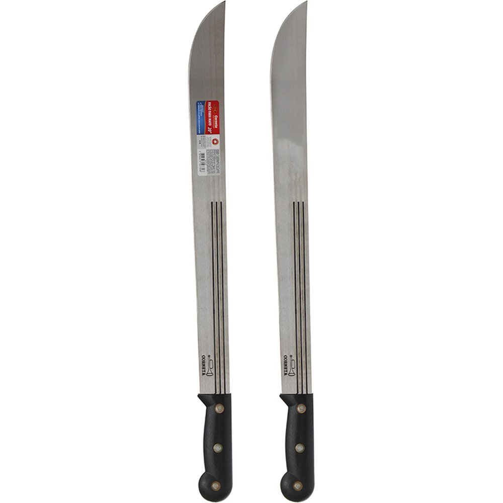 Facao Mato Granel 20' - Dimensões Da Peça: 63 X 4,8 X 2,3Cm - Quantidade Master: 24 Peças - Dimensões Master: 74,2 X 20 X 8,2Cm - Material: Aço Carbono E Pvc - Cor: Cabo Preto - Tipo De Embalagem: Saco Plástico - Marca: Corneta - Origem: Fabricado Na Corneta Da Colômbia - Lâmina: 20" - Espessura Da Lâmina: 1,5Mm - Características: ¿ Lâmina Em Aço-Carbono, Com Perfil Especial Para Cortar Com Segurança; ¿ Cabo Ergonômico E Composto Por Material Polipropileno De Alta Resistência; - Você Sabia? ¿ As Famosas Listras Dos Facões Corneta Não São Apenas Para Mudar O Aspecto Visual, Elas Servem Para Diminuir A Vibração Do Facão Durante O Impacto Do Golpe. A Corneta É Uma Das Poucas No Mundo Que Utiliza Essa Técnica De Melhoria. - Dicas De Conservação De Segurança: ¿ Manter Em Local Seco E Seguro. ¿ Manter Longe Do Alcance De Crianças. ¿ Manter Sempre Limpo Após O Uso. ¿ Utilizar A Ferramenta Correta Para Cada Trabalho. ¿ Use Sempre Equipamentos De Segurança. - Em Caso De Defeito De Fabricação Esse Produto Será Reparado Ou Substituído Gratuitamente.