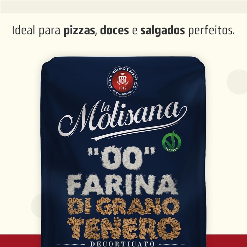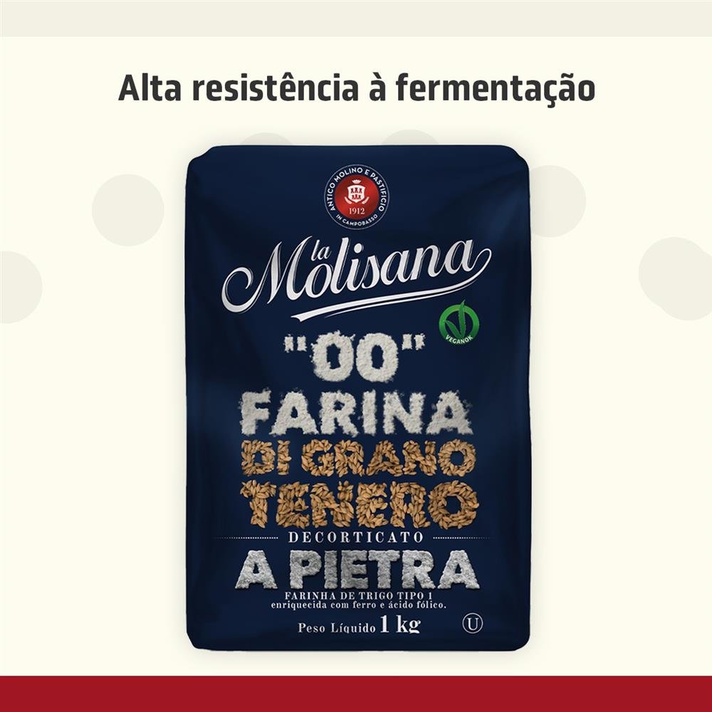 A Farinha de Trigo 00 Italiana La Molisana possui a moagem fina característica da farinha tipo 00, garantindo texturas perfeitas e resultados autênticos em suas receitas. Seja na preparação de massas frescas de macarrão, pizzas crocantes ou pães saborosos, essa farinha é a escolha ideal para chefs amadores e profissionais.