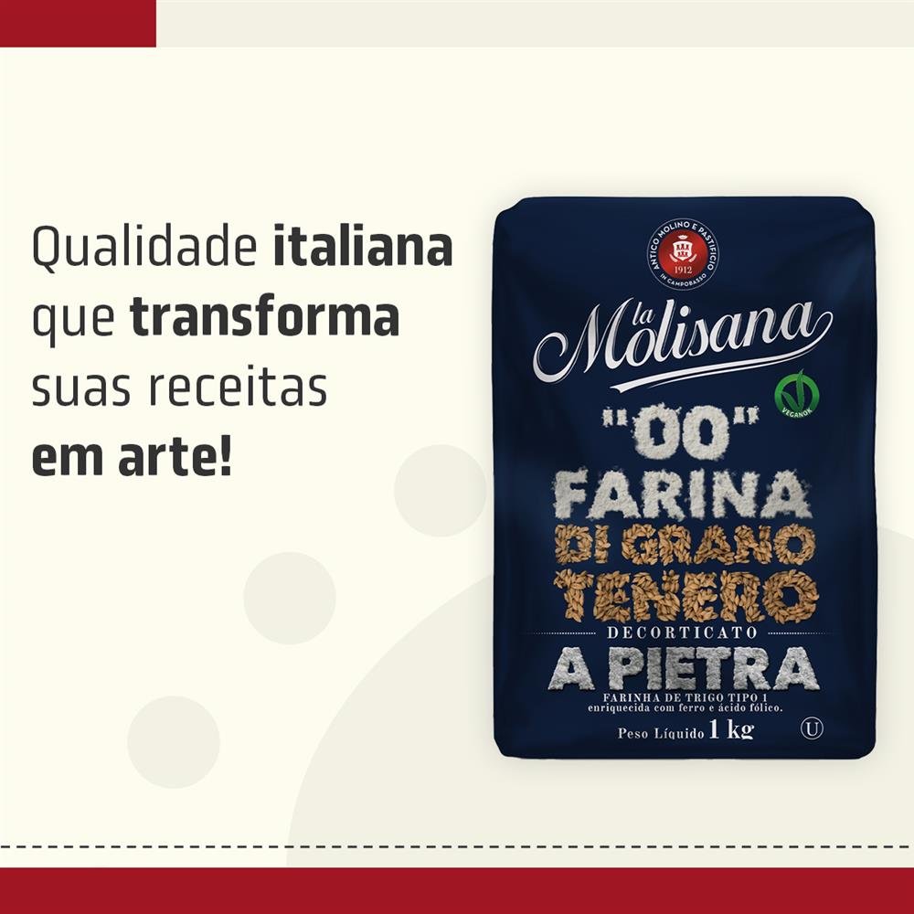 A Farinha de Trigo 00 Italiana La Molisana é um produto de alta qualidade, importada da Itália e registrada com o GTIN/EAN: - Com embalagem prática de 1kg, essa farinha tipo 00 é perfeita para preparar receitas tradicionais italianas, como massas frescas, pizzas e pães.