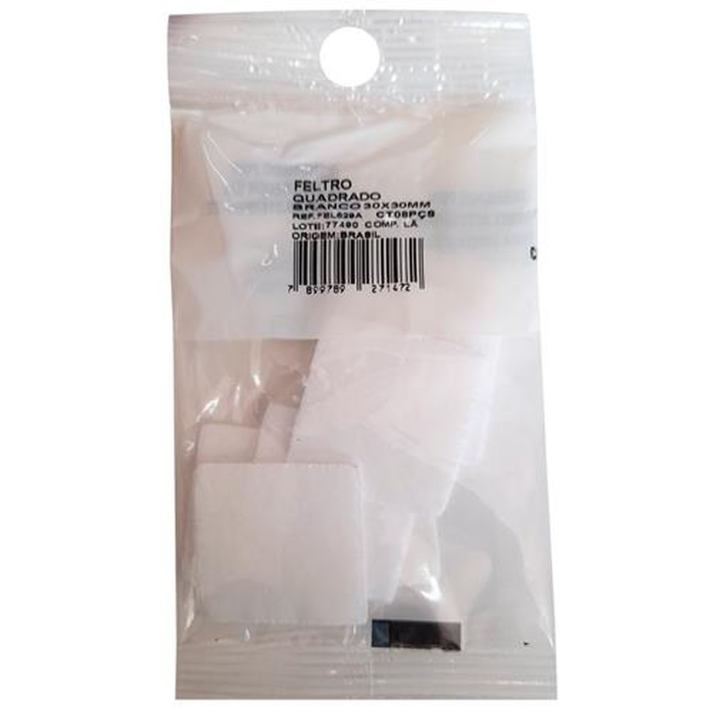 Feltro Quadrado 30x30mm - Branco - Cartela Com 8 Unidades