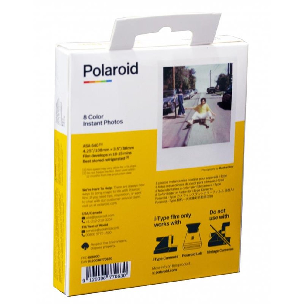 - Dentro do filme Polaroid i-Type: uma nova geração de filme instantâneo feito para câmeras i-Type. O formato Polaroid original que você adora em 8 fotografias instantâneas no formato quadrado Polaroid original e finalizadas em uma moldura branca. Compatível com sua Polaroid Now, Lab ou nova câmera OneStep