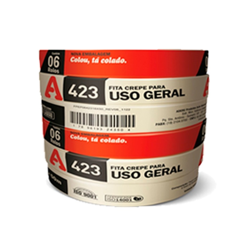 Fita Crepe Adere Uso Geral 423 - 18mmx50m Embalagem com 6 Unidades