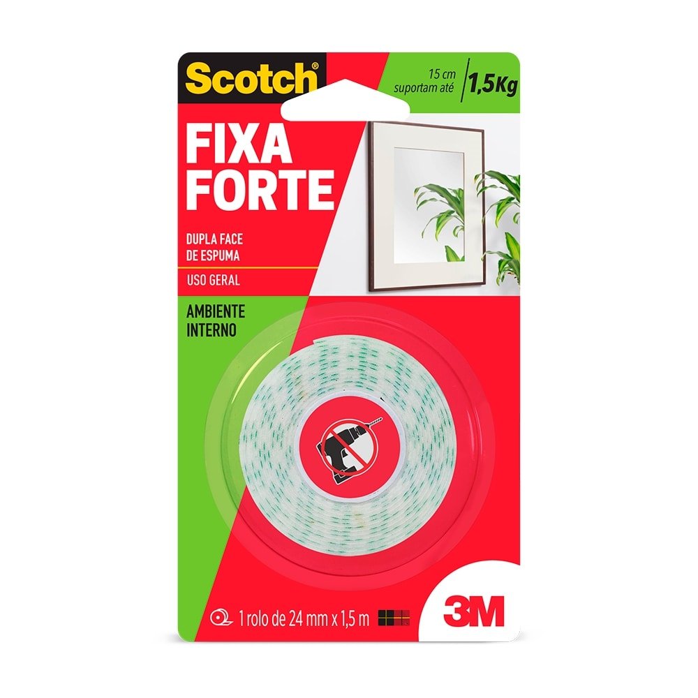 Fita Dupla Face 3m Fixa Forte Scotch de Espuma Ambiente Interno 24mm x 1,5m