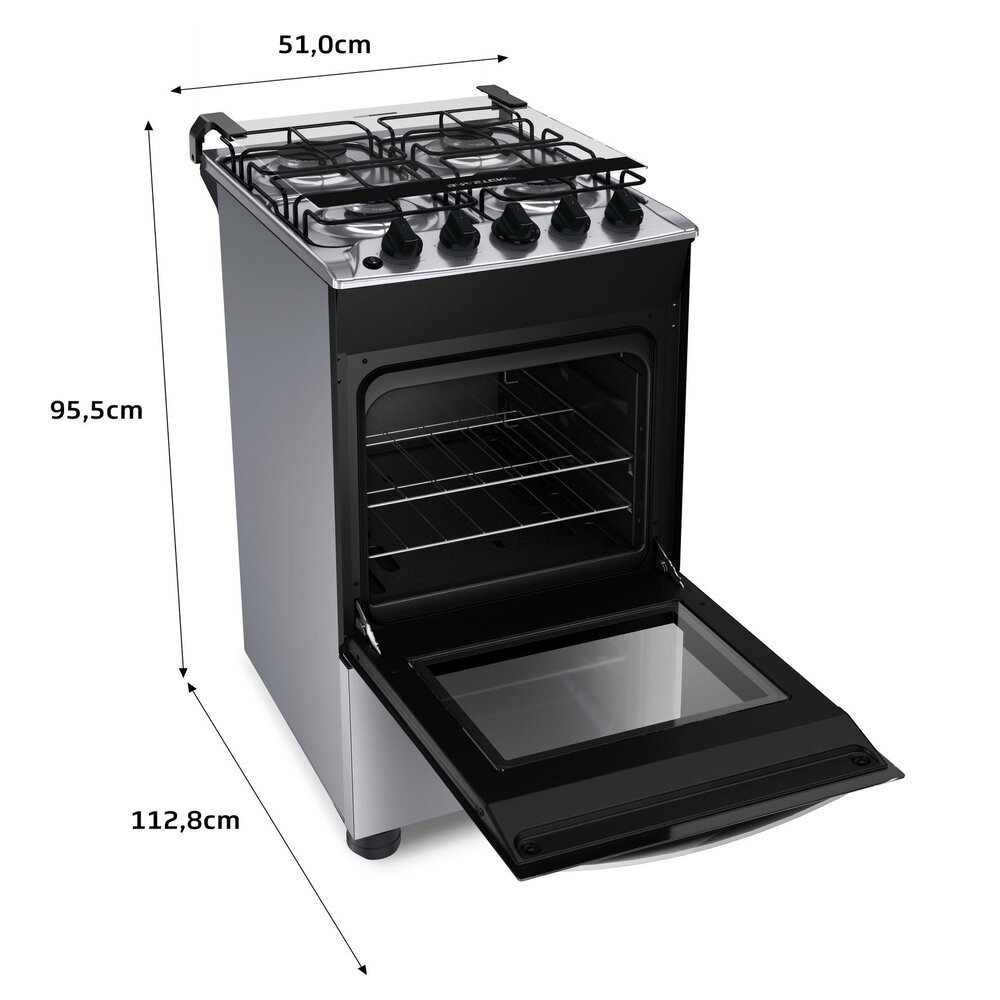 O Fogão Brastemp 4 bocas inox traz prateleiras ajustaveis que se adaptam aos tamanhos de seus preparos, alem de grades duplas.