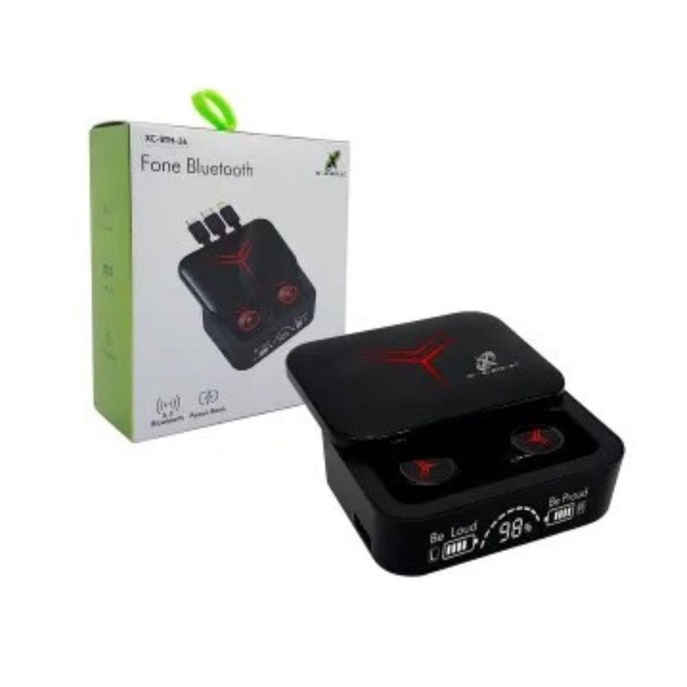 Fone Bluetooth 5.3 Xcell com Função Power Bank de 1200mah e 3 Cabos conjugados, pronto para atender a todos Smartphones