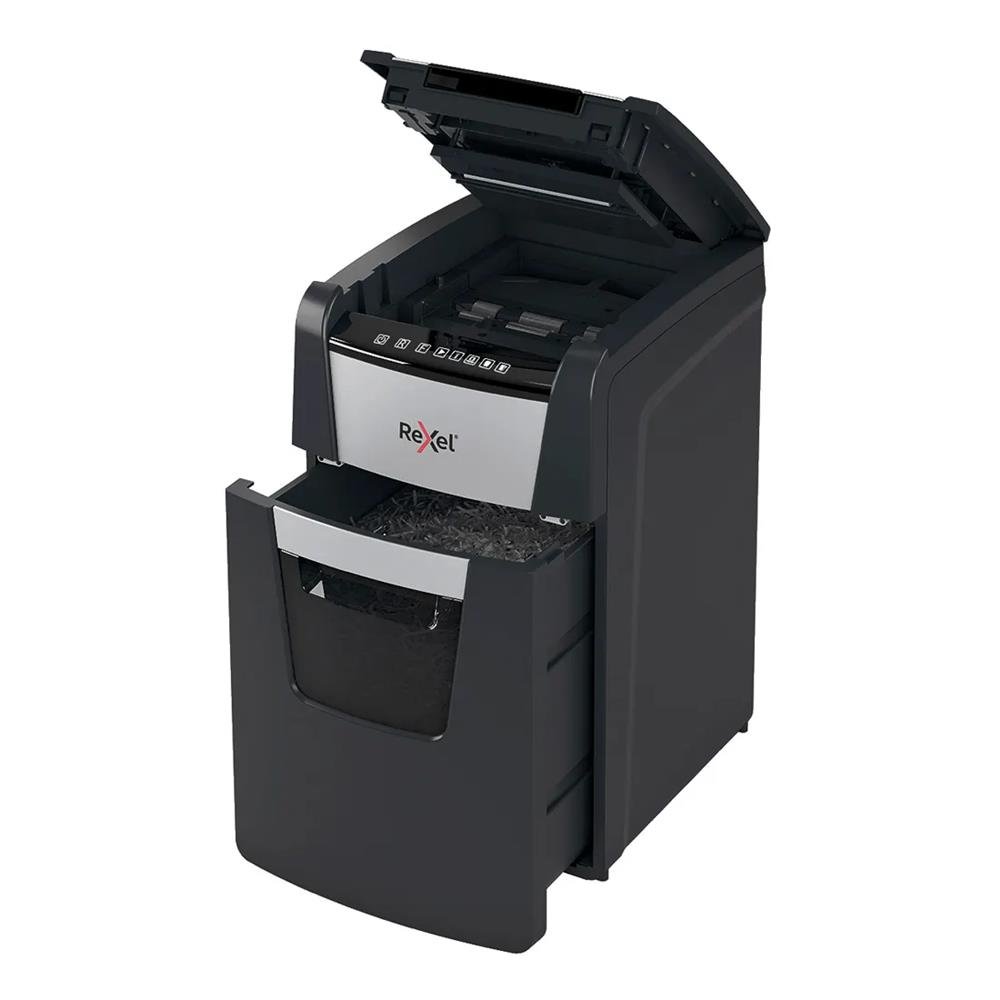 A Fragmentadora Rexel® Auto+ 150X é ideal para utilização compartilhada por até duas pessoas. Com uma operação silenciosa, é perfeita para qualquer ambiente de trabalho. A 150X possui a tecnologia patenteada Auto+, em que os rolos levam automaticamente o papel para os cortadores sem a intervenção do usuário - permitindo que este dedique mais tempo para outras tarefas.