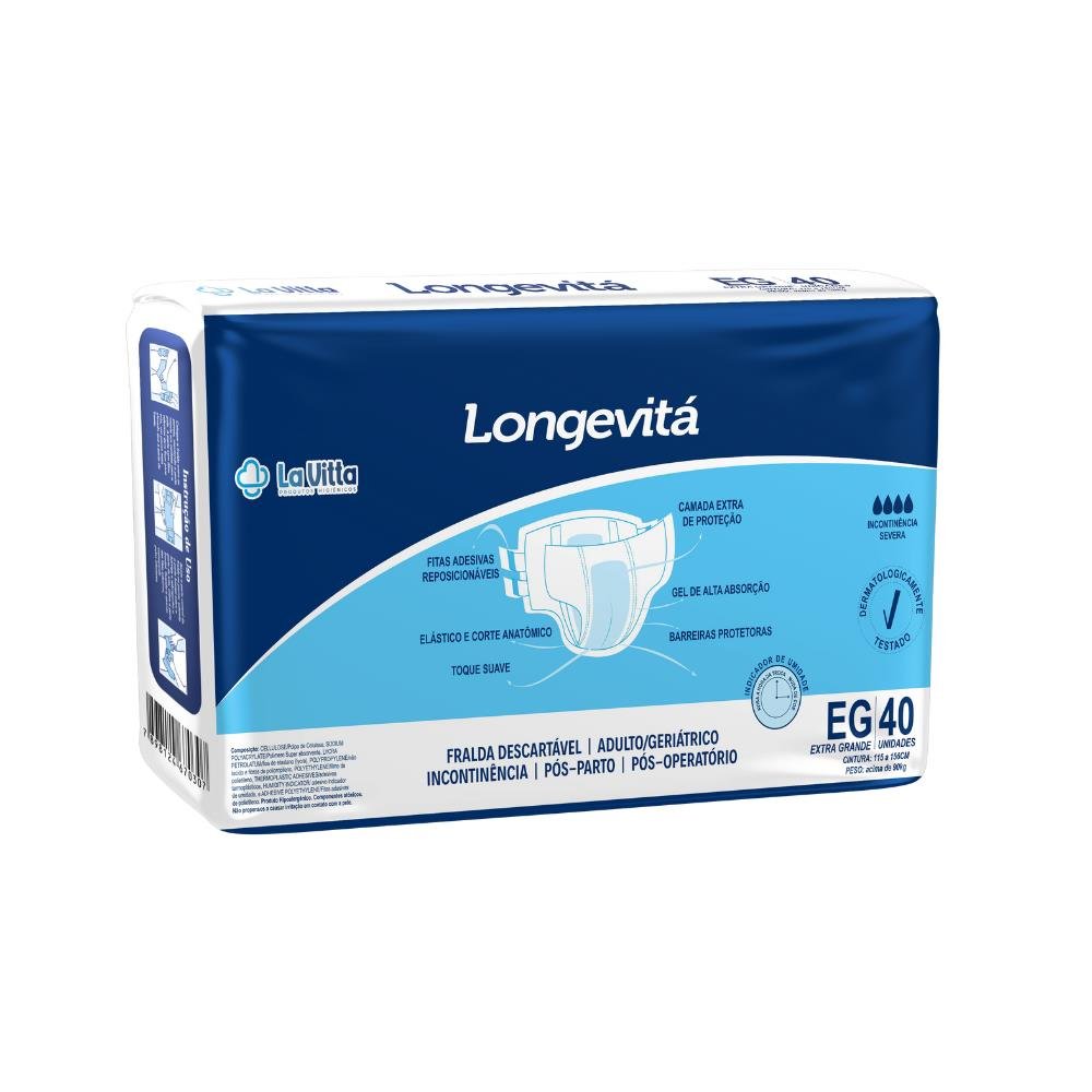 Fralda Geriátrica Longevita Eg 4 Pacotes Com 40 Unidades - La Vitta