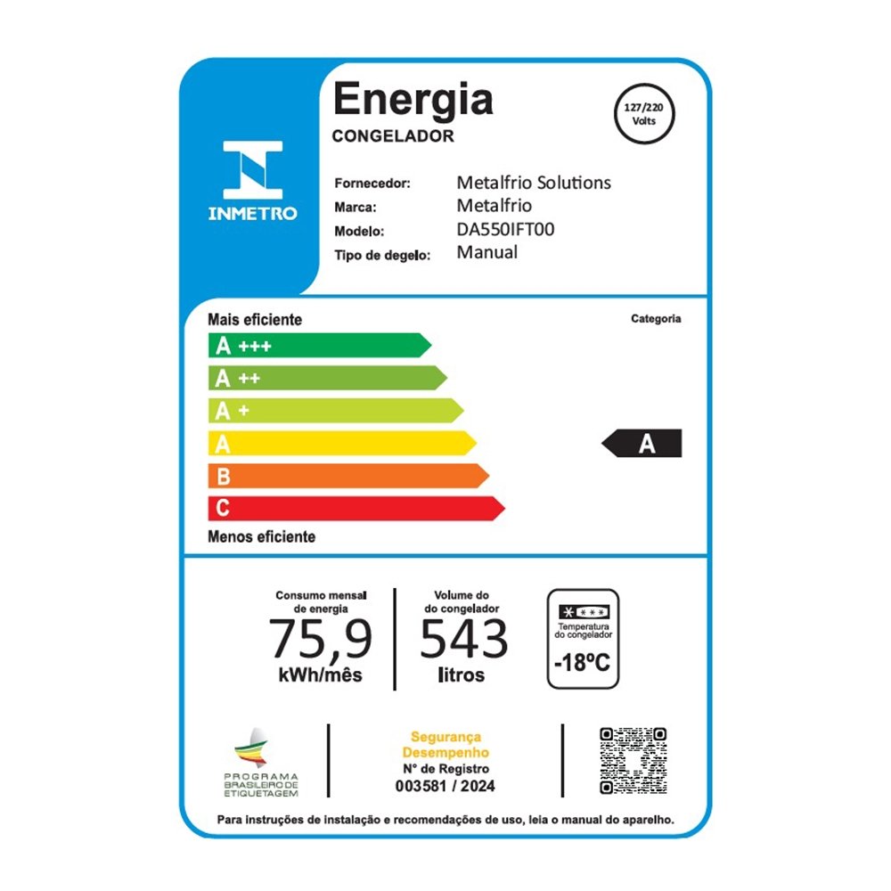 Freezer Horizontal Metalfrio 543 Litros DA550IF - Dupla Ação, Tecnologia Inverter, Branco, Bivolt