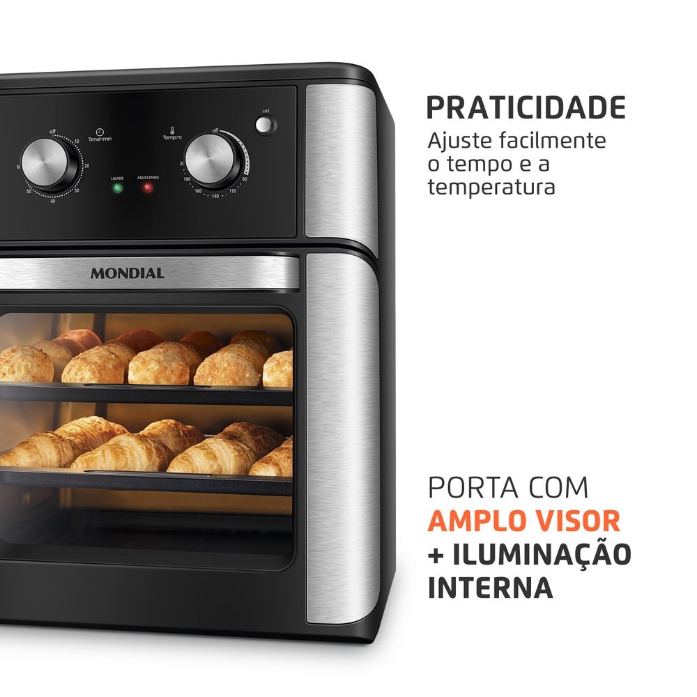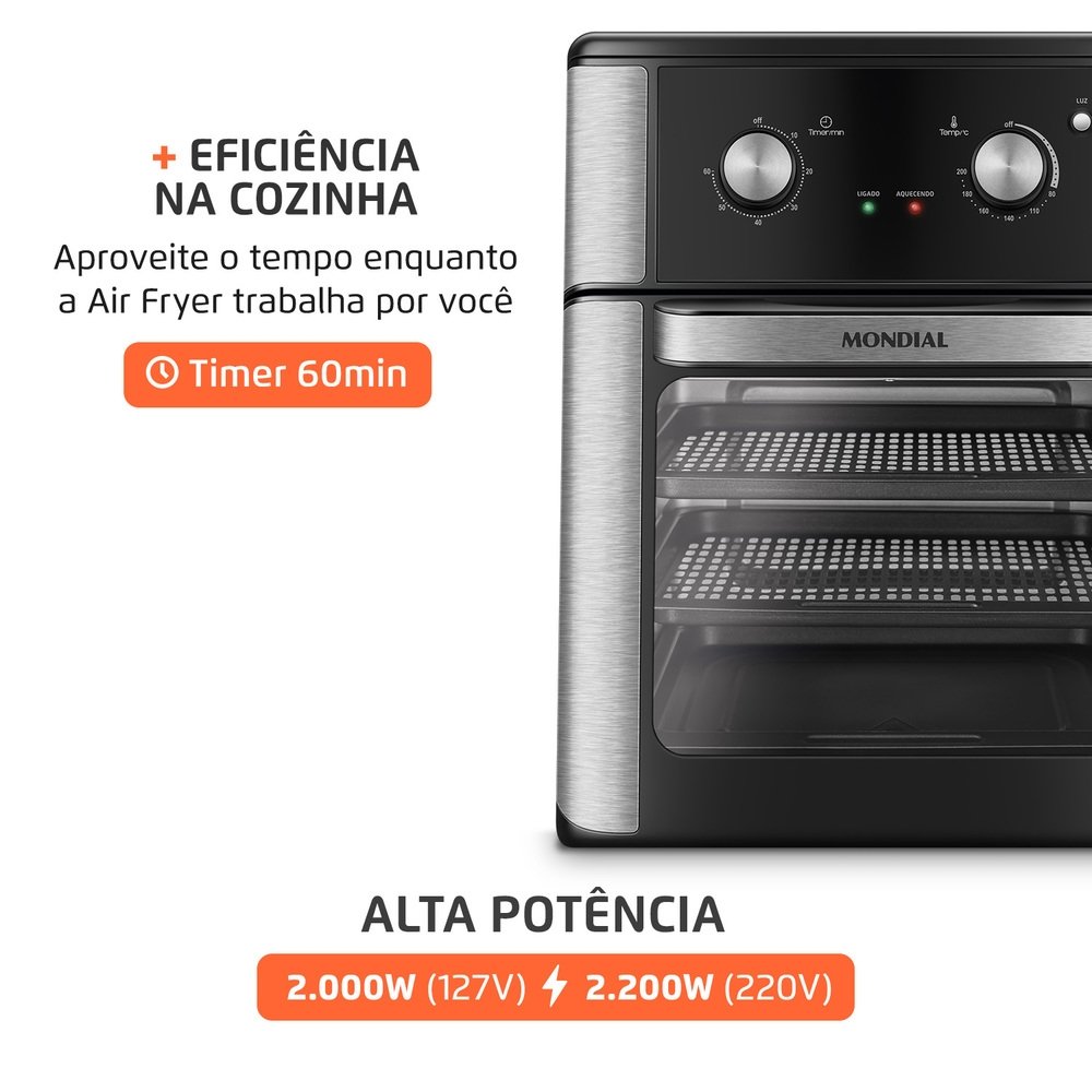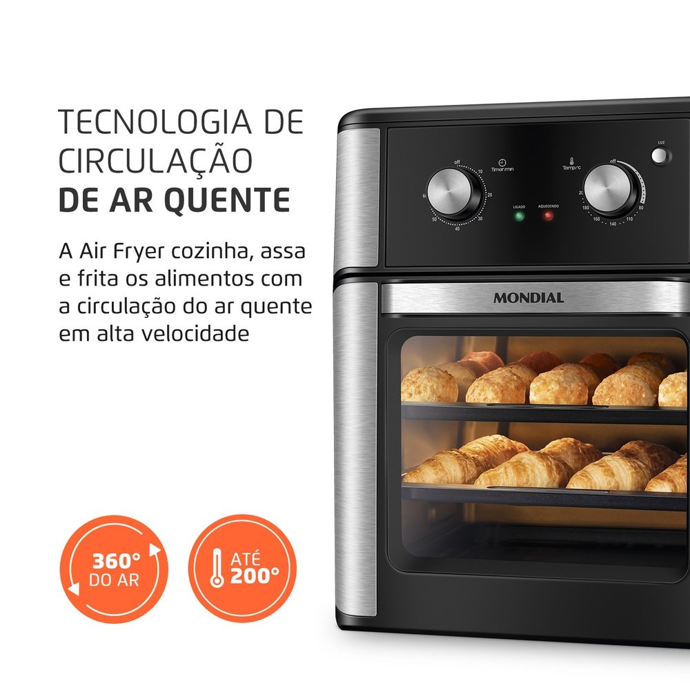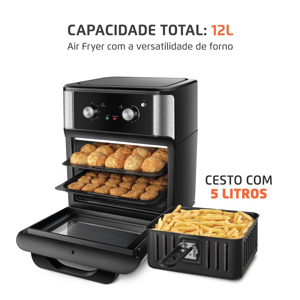 Fritadeira Air Fryer Mondial AFON-12L-AB Forno Oven 12 Litros, 2000W, Preto/Inox, 110V