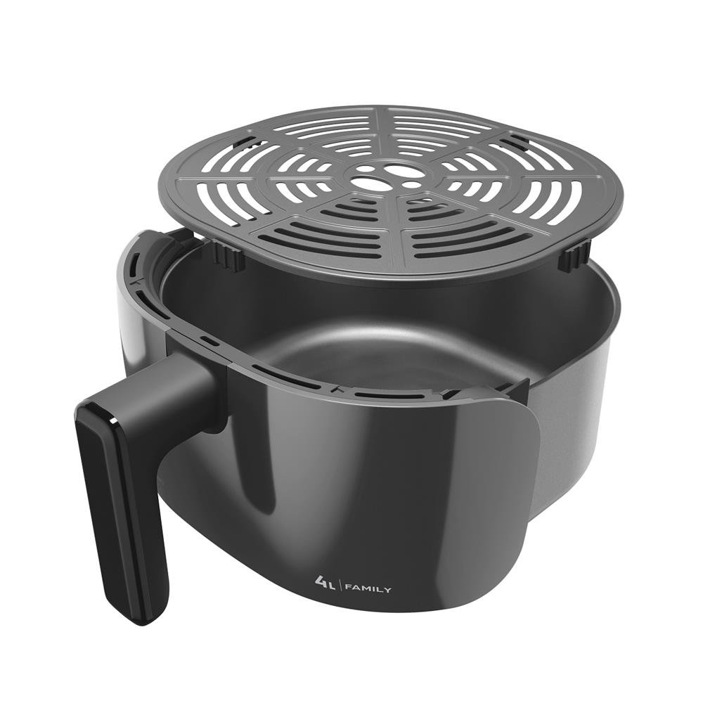 O design quadrado do cesto da air fryer 4L tem lugar de sobra para suas receitas. O espaço extra garante que a cocção de cada pedaço seja uniforme e rápida. Além disso, a grelha removível permite uma circulação eficiente do ar para realçar o sabor das refeições.