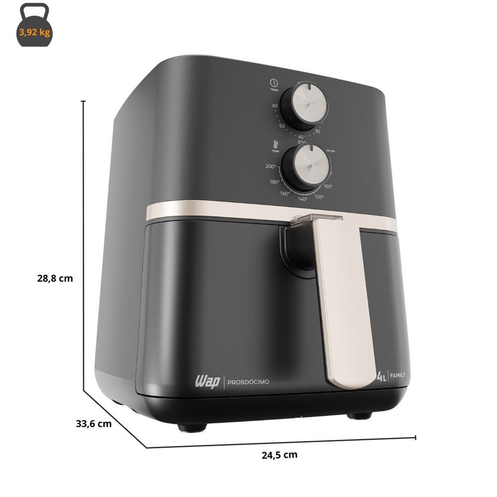 Fritadeira Eletrica Sem Óleo Wap Air Fryer 4l Family 1500w 127v Preto