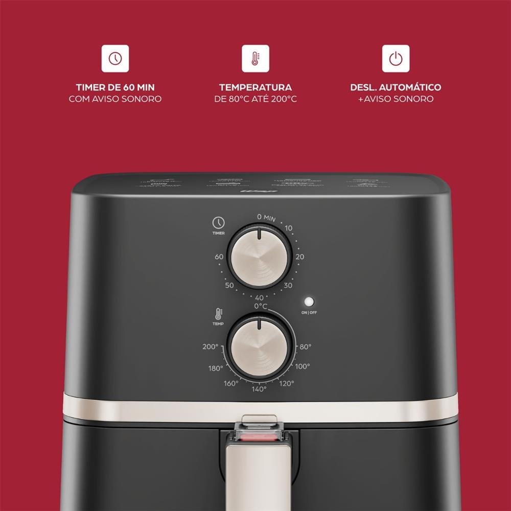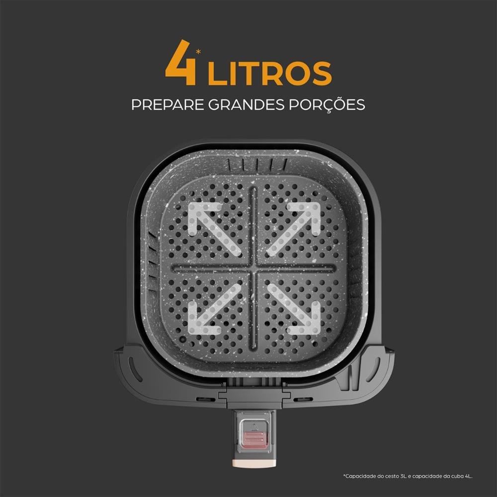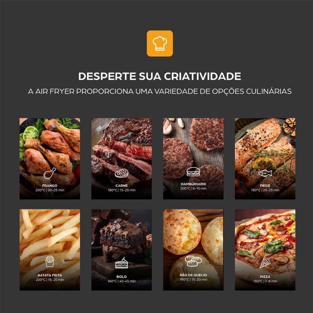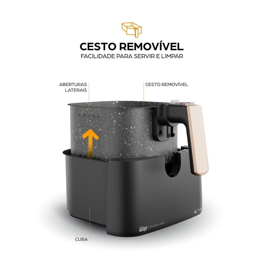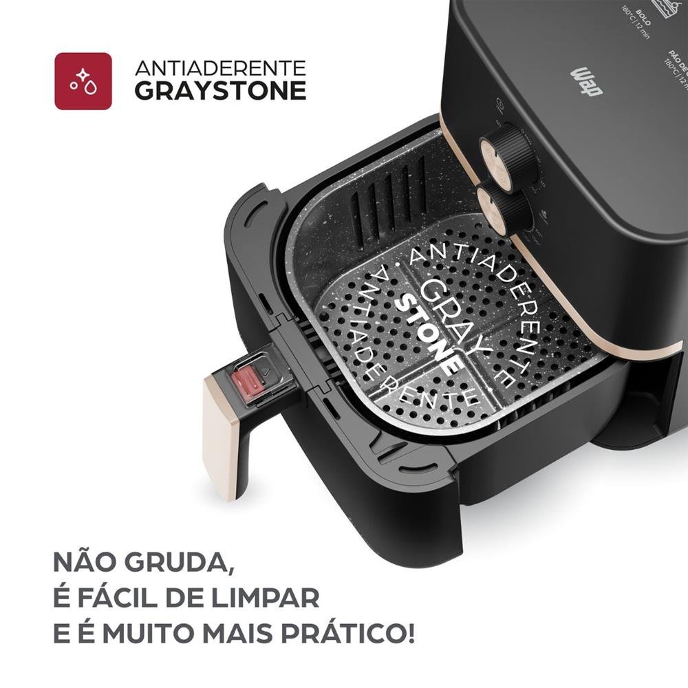 Descubra uma maneira saudável e prática de preparar seus pratos favoritos com a Fritadeira Elétrica WAP Air Fryer Family. Com capacidade de até 4 litros, ela é perfeita para porções generosas, atendendo toda a família. A tecnologia de circulação de ar em 360° proporciona um cozimento uniforme, deixando os alimentos crocantes por fora e macios por dentro, eliminando a necessidade de óleo e garantindo refeições mais saudáveis. Seu cesto removível com duplo revestimento antiaderente GrayStone facilita tanto o preparo quanto a limpeza, oferecendo durabilidade e praticidade. Com um timer ajustável de 60 minutos e faixa de temperatura de 80°C a 200°C, você tem controle total para preparar uma variedade de pratos com precisão e facilidade. Experimente possibilidades culinárias incríveis, como pães de queijo, mini-hambúrgueres, cupcakes e coxinhas, tudo de forma saudável. A Fritadeira WAP Air Fryer Family combina design elegante, funcionalidades modernas e qualidade, tornando-se uma peça indispensável para qualquer cozinha.