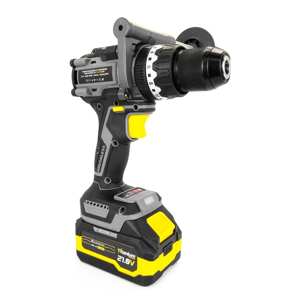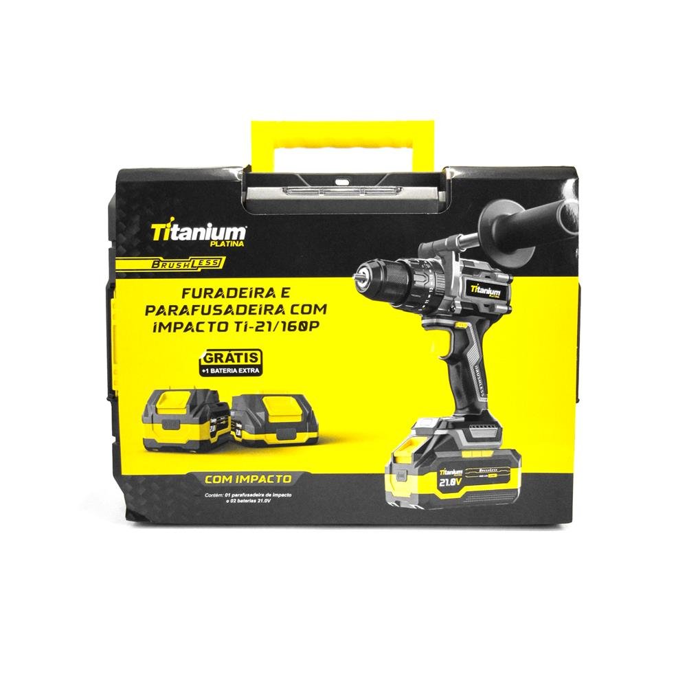 Furadeira E Parafusadeira Com Impacto Ti-21/160P - Titanium Platina A Furadeira E Parafusadeira Com Impacto Ti-21/160P Da Titanium Platina Representa A Evolução Definitiva Em Tecnologia Sem Fio Para Aplicações Profissionais Que Exigem Máximo Torque E Versatilidade. Equipada Com Motor Brushless De Última Geração E Alimentada Por Baterias De Íon De Lítio De 21V, Oferece Um Torque Excepcional De 160 Nm E Taxa De Impacto De 30.000 Bpm. Desenvolvida Para Superar Os Desafios Mais Exigentes Do Mercado Profissional, Esta Ferramenta Combina Potência Industrial Com Mobilidade Total, Garantindo Eficiência E Produtividade Em Qualquer Ambiente De Trabalho. Aplicação De Uso