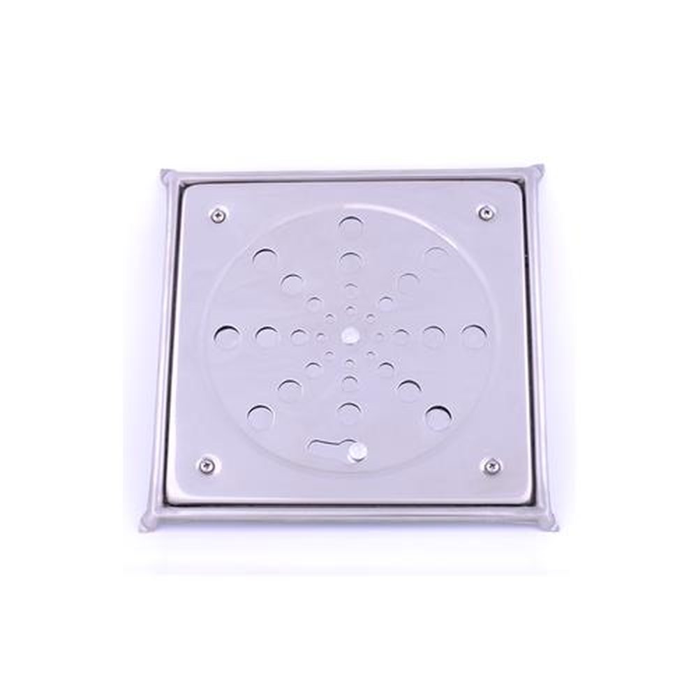 Grelha quadrada em aço-inox. Indicado para instalação no sistema de drenagem de banheiros, cozinhas, lavanderias.