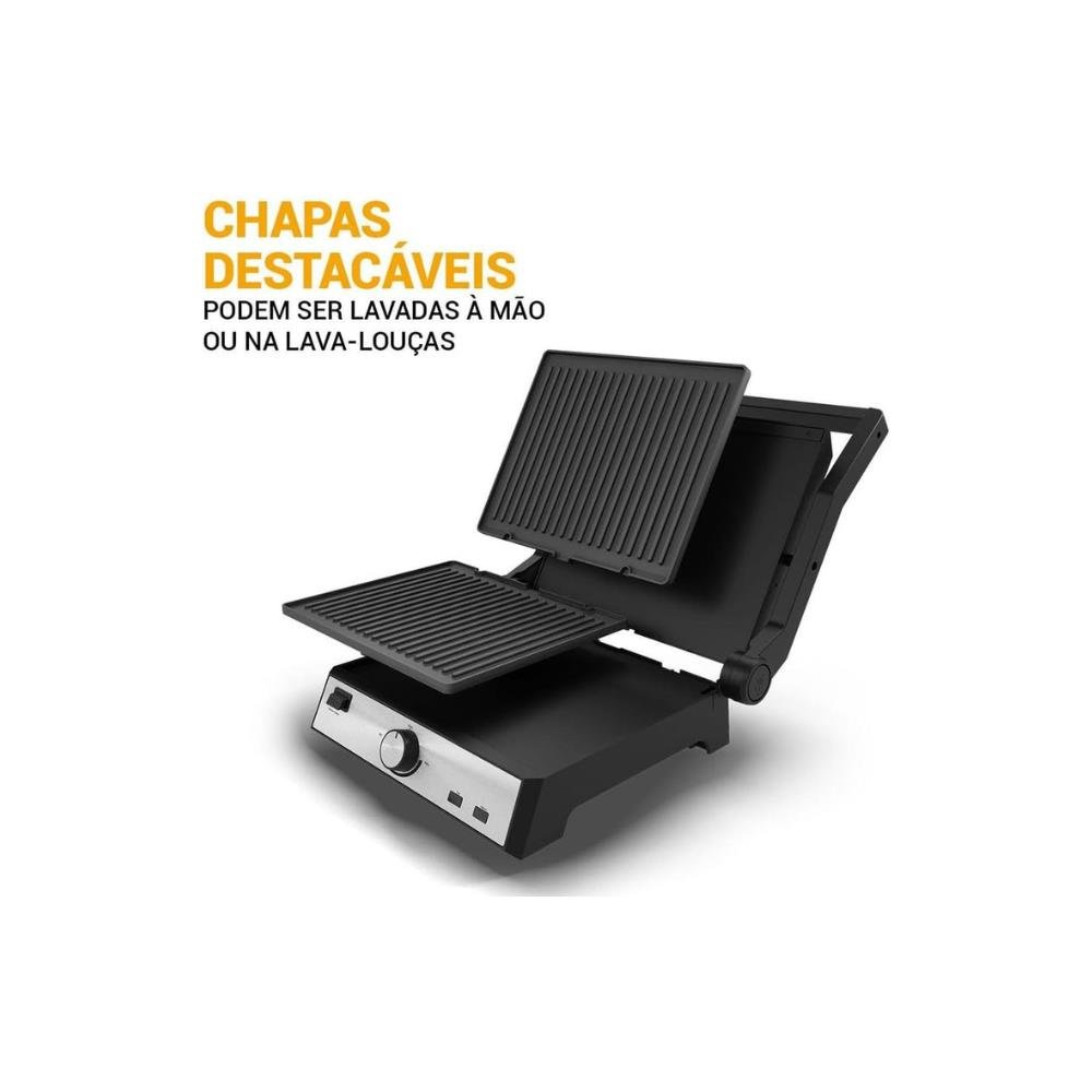 Transforme sua rotina com o Grill Philco 2 em 1 Chapas Removíveis e abertura 180° PGR50A! Ideal para famílias que buscam praticidade no dia a dia, o Grill e Sanduicheira Philco oferece versatilidade para as suas refeições. Utilize como grill ou sanduicheira e prepare alimentos deliciosos com agilidade. Além disso, suas chapas com dimensões de 290x230mm e abertura 180°, permite grelhar carnes, legumes e muito mais, dos dois lados por igual e sem grudar, graças ao revestimento antiaderente Maxx Clean, que proporciona maior durabilidade e simplicidade na limpeza. Com chapas removíveis, a limpeza nunca foi tão fácil. Lave à mão ou na lava-louças e desfrute de mais tempo para outras atividades. Possui ainda coletor de gordura que assegura refeições saudáveis e sem sujeira. Você ainda pode ajustar a temperatura conforme a necessidade e obter resultados perfeitos para cada tipo de preparo. Tenha mais saúde e sabor em suas receitas com o Grill Philco 2 em 1 Chapas Removíveis e abertura 180° PGR50A. Afinal, tem coisas que só a Philco faz para você! ¿ 2 em 1 ¿ Sanduicheira e Grill ¿ Chapa com abertura de 180° ¿ Acompanha coletor de gordura ¿ Seletor de temperatura com ajuste gradual ¿ Luz indicadora de funcionamento ¿ Luz indicadora de aquecimento ¿ Placas removíveis para limpeza ¿ Placas onduladas com revestimento antiaderente ¿ Pés antiderrapantes ¿ Dimensões das placas 290x230 mm ¿ Acabamento em aço inoxidável ¿ Composição Metal e Baquelite.