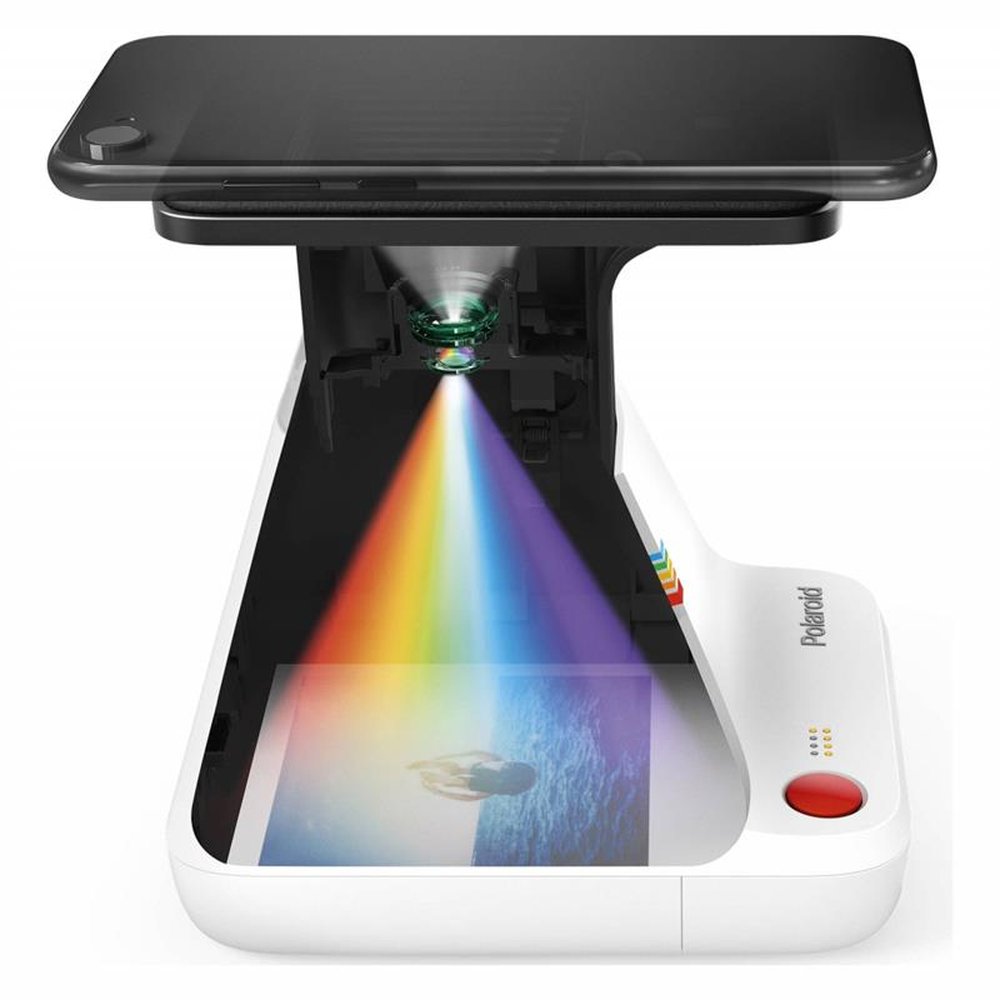 - Um processo verdadeiramente analógico feito para a era digital: usando um sistema de 3 lentes projeta a imagem da tela do seu celular e em um momento "mágico" materializa a foto impressa no filme Polaroid
