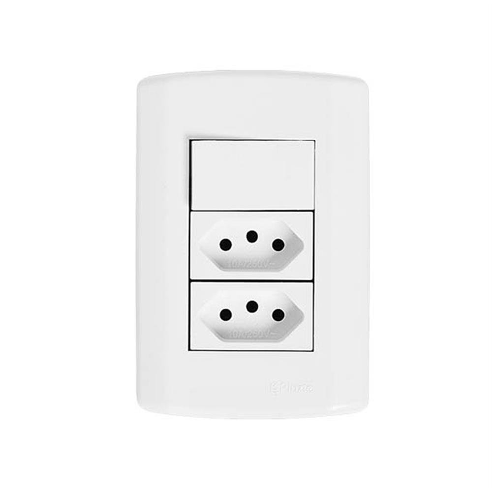 Interruptor 1 Simples + 2 Tomadas 2X4 Modular 20A Branco Pluzie