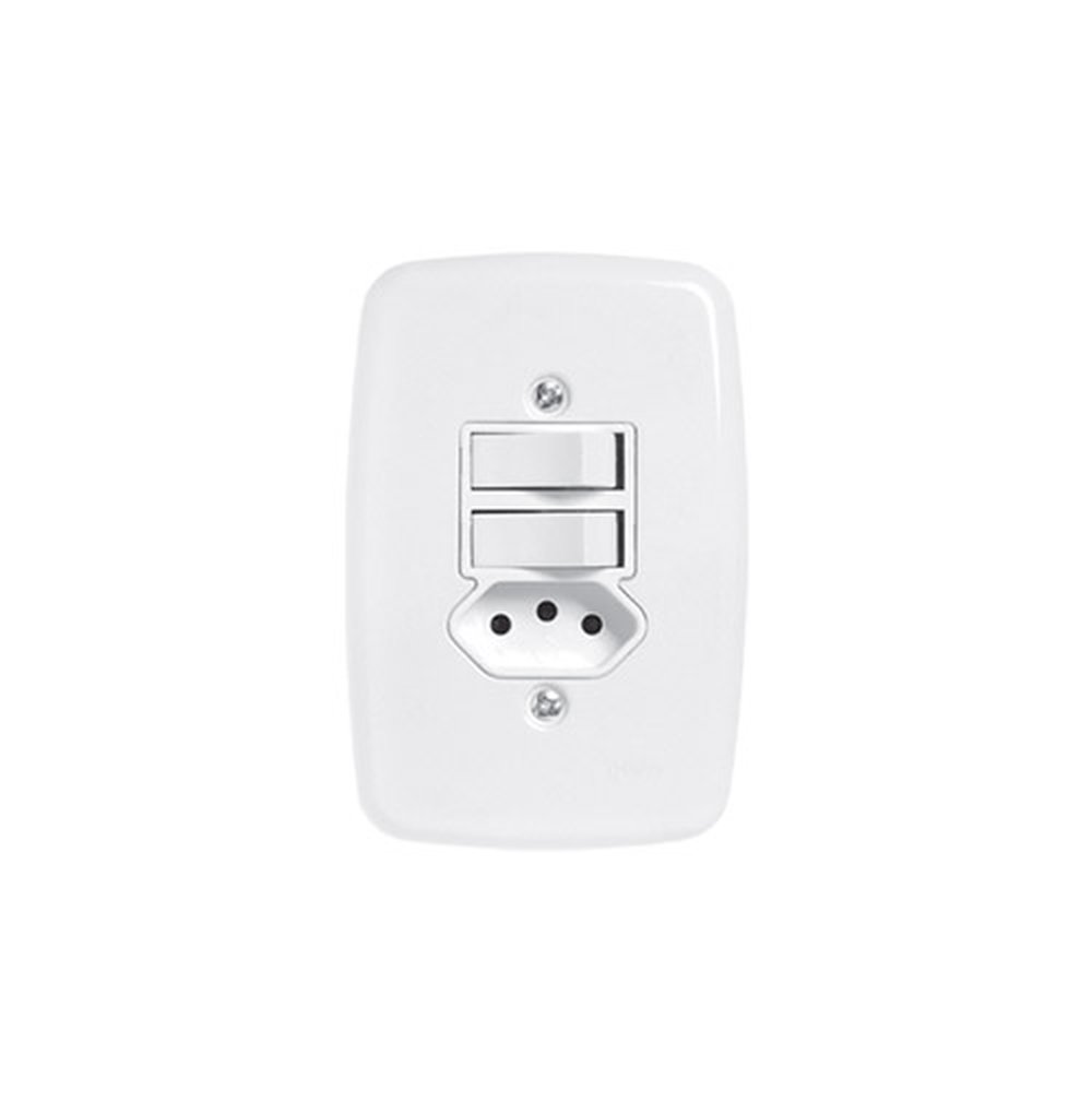 Interruptor 2 Paralelas + Tomada 2P+T 10A 250V Com Placa 4X2 Ideale Branca