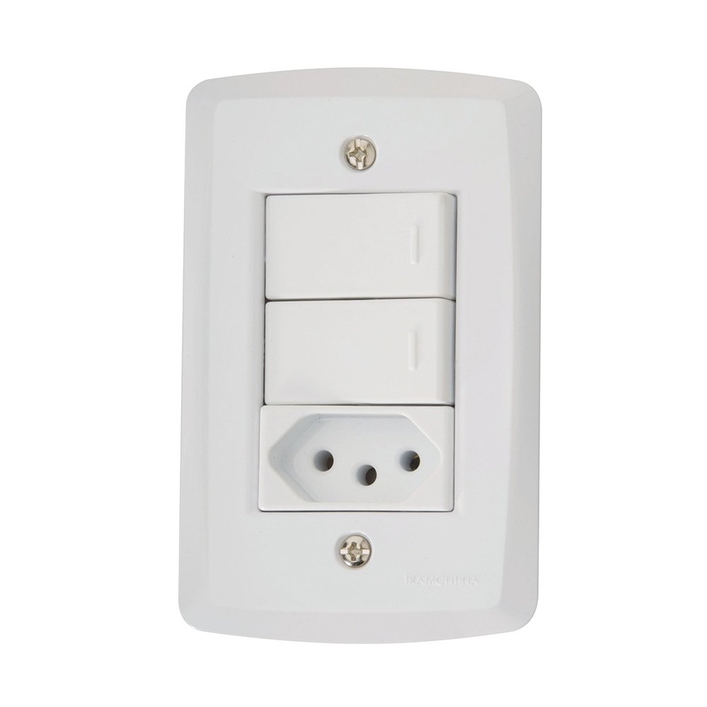 Interruptor Lux2 Tramontina 2 Teclas Simples + Tomada 2P + T 10A com Placa Branca