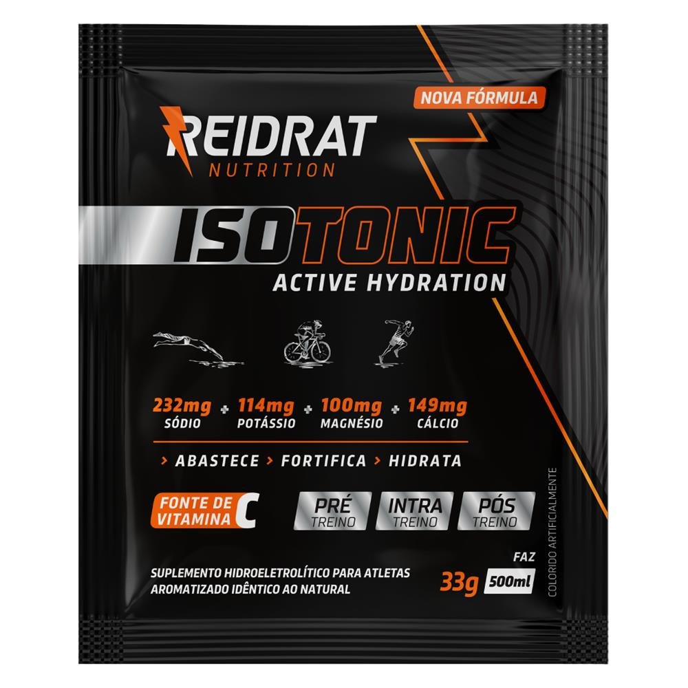 O Suplemento Hidroeletrolítico ISOTÔNICO 33g em Pó da Reidrat Nutrition é ideal para ser consumido antes, durante e depois dos treinos e competições, por conter a mesma osmolaridade (>>313<<) que o plasma sanguíneo, o que significa que a reposição de sais minerais, carboidratos e água seja realizados instantaneamente. Este produto repõe os sais minerais que o corpo perde durante a realização de atividades físicas intensas, auxiliando na reidratação evitando a queda de rendimentos durante os exercícios físicos e de problemas decorrentes da desidratação. COMBATE A DESITRATAÇÃO CAUSADA PELA DENGUE. O ISOTÔNICO 33g OFERECE: