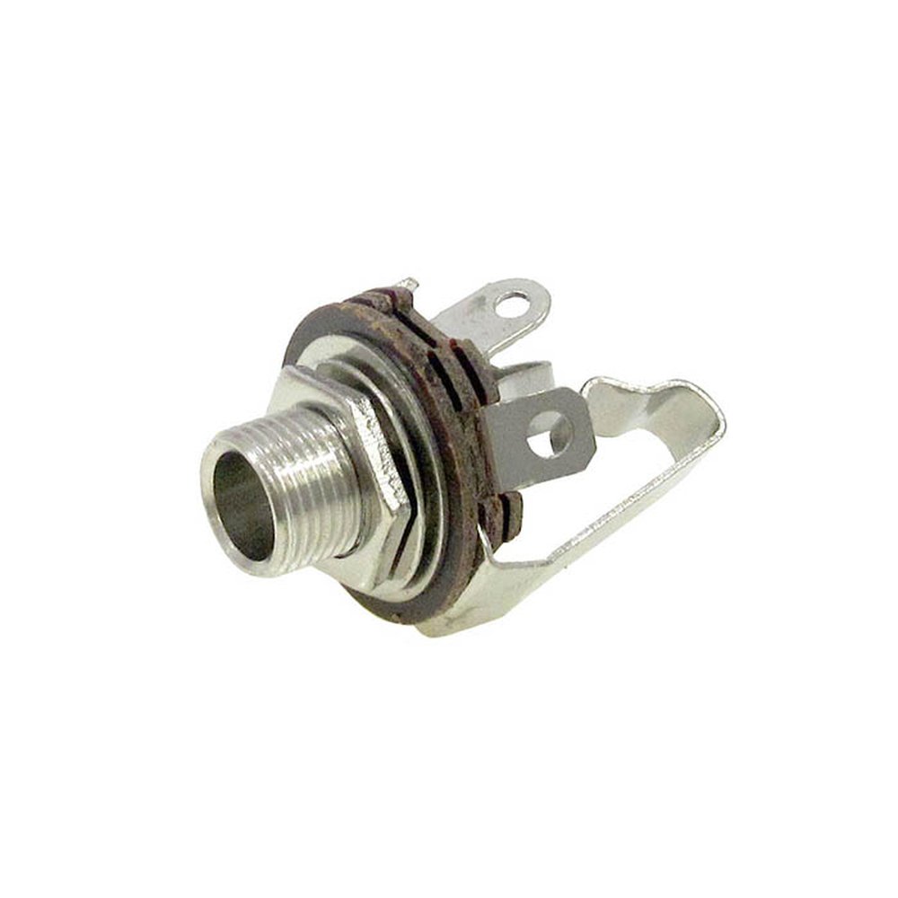 O Jack J10 Estéreo Circuito Aberto Niquelado Tblack é utilizado em equipamentos de áudio para conexão com plugs P10, acompanha porca e arruela. Cor: Metálico
