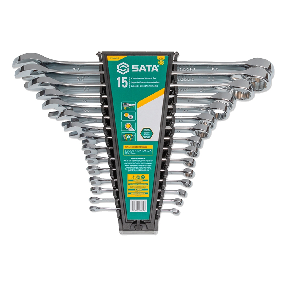O Jogo de Chaves Combinadas Sata foi desenvolvido para garantir máxima eficiência, resistência e durabilidade no uso diário. Com acabamento cromado e polido que facilita a limpeza e evita o descascamento, esse conjunto oferece chaves com medidas padronizadas tanto na ponta fixa quanto na estrela. Sua tecnologia Surface Drive garante melhor distribuição de força e evita que a cabeça de parafusos ou porcas espane. Fabricadas em aço Cromo-Vanádio, seguem normas rigorosas internacionais (ASME), sendo ideais para apertos e desapertos com mais segurança, praticidade e vida útil prolongada.