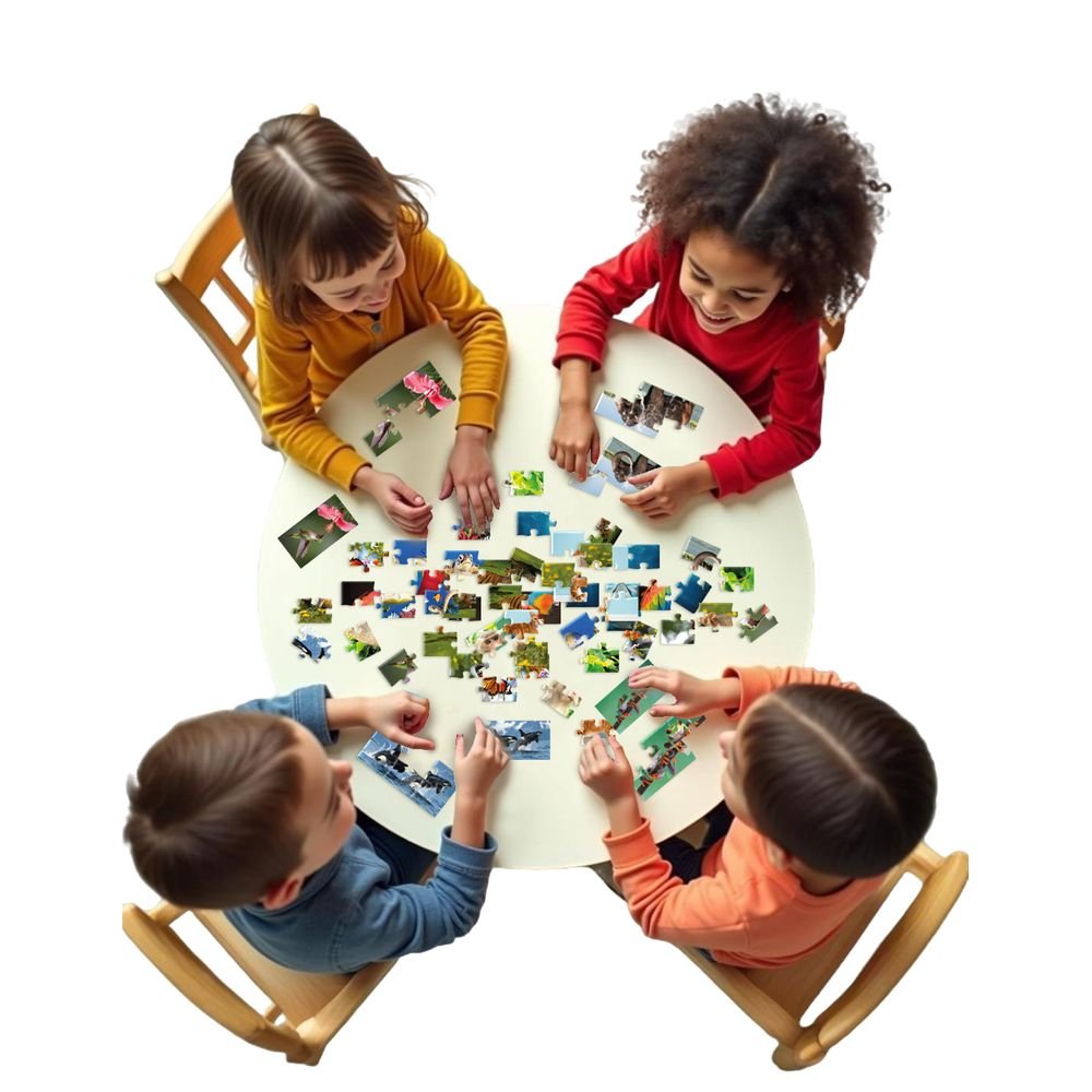 O Jogo Desafio dos Quebra-Cabeças - Brincadeira de Criança é ideal para crianças explorarem o raciocínio lógico e a coordenação motora de forma lúdica e envolvente. Para um uso produtivo, comece escolhendo uma das 24 cartelas de imagem e incentive a criança a observar os detalhes antes de montar o quebra-cabeça correspondente de 6 peças. O jogo pode ser feito individualmente ou em duplas, promovendo o trabalho em equipe e a socialização. Organize os desafios em ordem crescente de dificuldade para manter o interesse e o aprendizado progressivo. Após o uso, guarde as peças e cartelas em local seguro, incentivando o cuidado com o material e a autonomia da criança.
