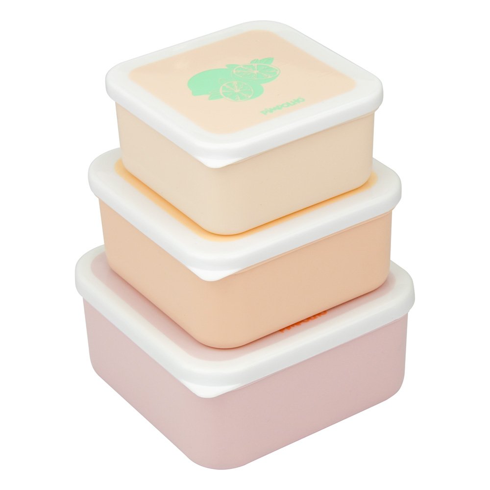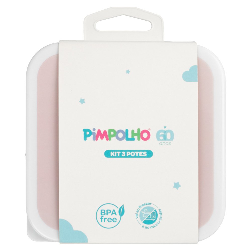 O conjunto trio de potes da Pimpolho e perfeito para biscoitos, vegetais, frutas e alimentos secos. Sua tampa de encaixe colorida e fofa mantem os alimentos frescos em casa ou em transito, destaque para seu design de aninhamento que economiza espaco na hora de guardar. Incluso tres potes com tamanhos diferentes respectivamente de 500ml, 350ml e 200ml para atender as suas necessidades. Material seguro. Este produto e feito de polipropileno, sem BPA, sem PV, sem Ftalato. Polibag com 2 unidades de 3 potes cada, sendo: 1 Rosa/Arco-iris 500ML, 1 Bege/Frutinha 350ML e 1 Off white/Limão 200ML.