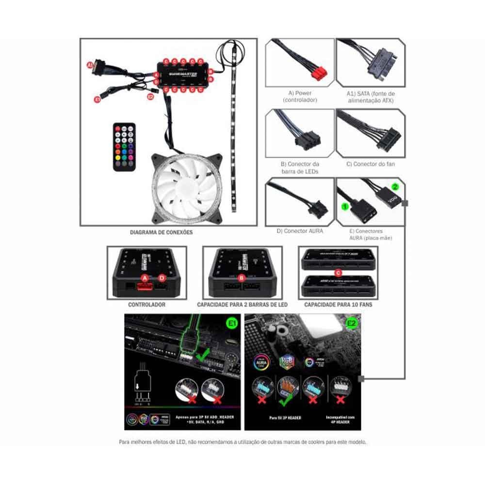 Kit argb aaja starritmicos k-mex fan120*3pc+cont remoto c/fita