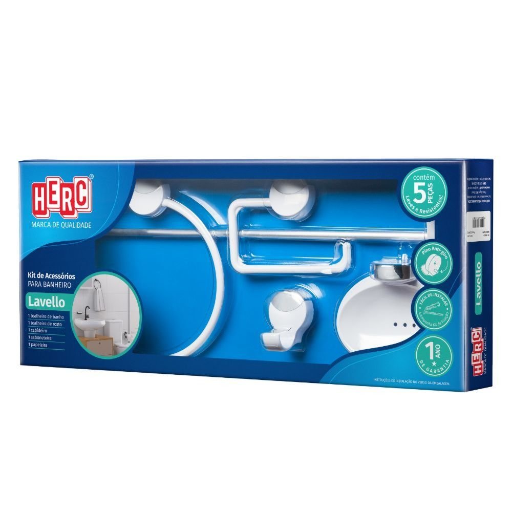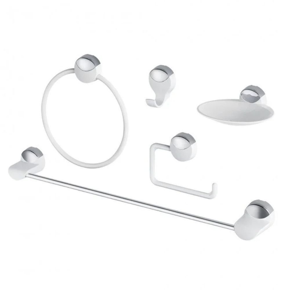 Kit Banheiro 5 Peças Branco Com Cromado Lavello Herc