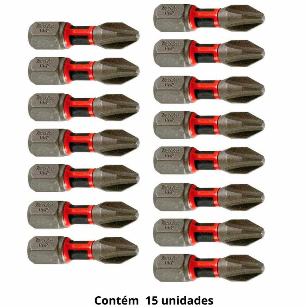 Kit Bit Makita Torção Impact PH2 25mm E-03246 15 Peças