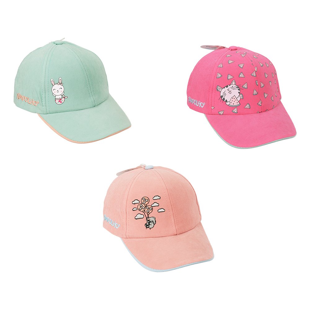 O Boné infantil possui cores e estampas divertidas, tecido com toque super macioe aveludado. Seu fechamento posterior com velcro é confortavel e ideal para proteger os pequenos do sol com muita diversão. Polibag com 6 unidades, sendo: 2 Verde/Coelho, 2 Rosa/Gatinha e 2 Rosa/Elefante.