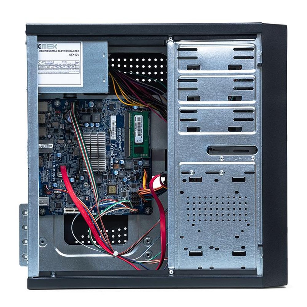 Processador Intel® Core¿ i3-2100 3.1GHz | Memória 4GB (1x 4GB) | SSD 120GB SATA III 430MB/s | Placa Mãe H61 DDR3 GT (S,V,R) | USBs Frontais: 2x USB, Traseiras: 6x USB 2.0 | Vídeo Integrado Intel® HD Graphics 2000 (provido pelo processador) | 1x HDMI + 1x VGA | Realtek ALC662 HD Audio 5.1 Canais | Rede 10/100Mbps Realtek® 8105E (Fast Ethernet) | Linux em português | Fonte Goldentec 250W ATX | 365 x 175 x 360mm Mouse: 1000 DPI | 2 botões + scroll | Compatibilidade Windows e iOS Teclado: 20 funções multimídia | Padrão ABNT 2 | Resistente a água | Compatibilidade Windows e iOS | Quantidade de teclas: 127.