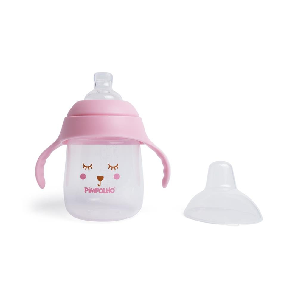 Polibag com 1 unidade na cor Rosa. O copo de treinamento de 240 ML da Pimpolho é o amigo perfeito do bebê na fase de introdução alimentar, seu design de ursinho além de interativo é super funcional, na tampa possui bico de silicone macio e anatômico que estimula o exercício de sucção e nas alças possui textura, ideal para ter uma boa aderência nas mãozinhas do bebê. Produto atóxico e livre de BPA.