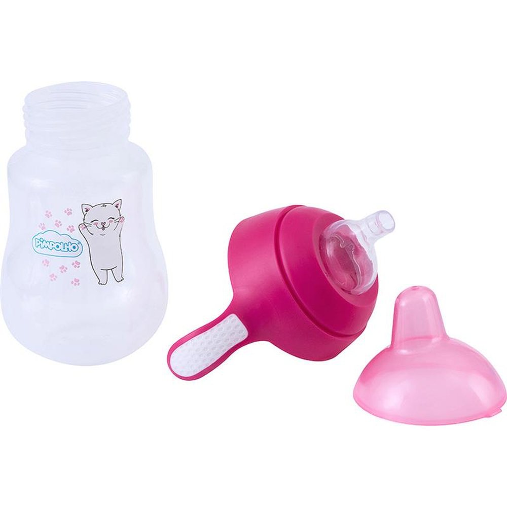 Caixa com 6 unidades, sendo todas na cor rosa. O copo de treinamento Pimpolho possui bico de silicone macio e anatômico que estimula o exercício de sucção e o desenvolvimento oral. É antivazamento e possui tampa para proteger o bico contra sujeira.