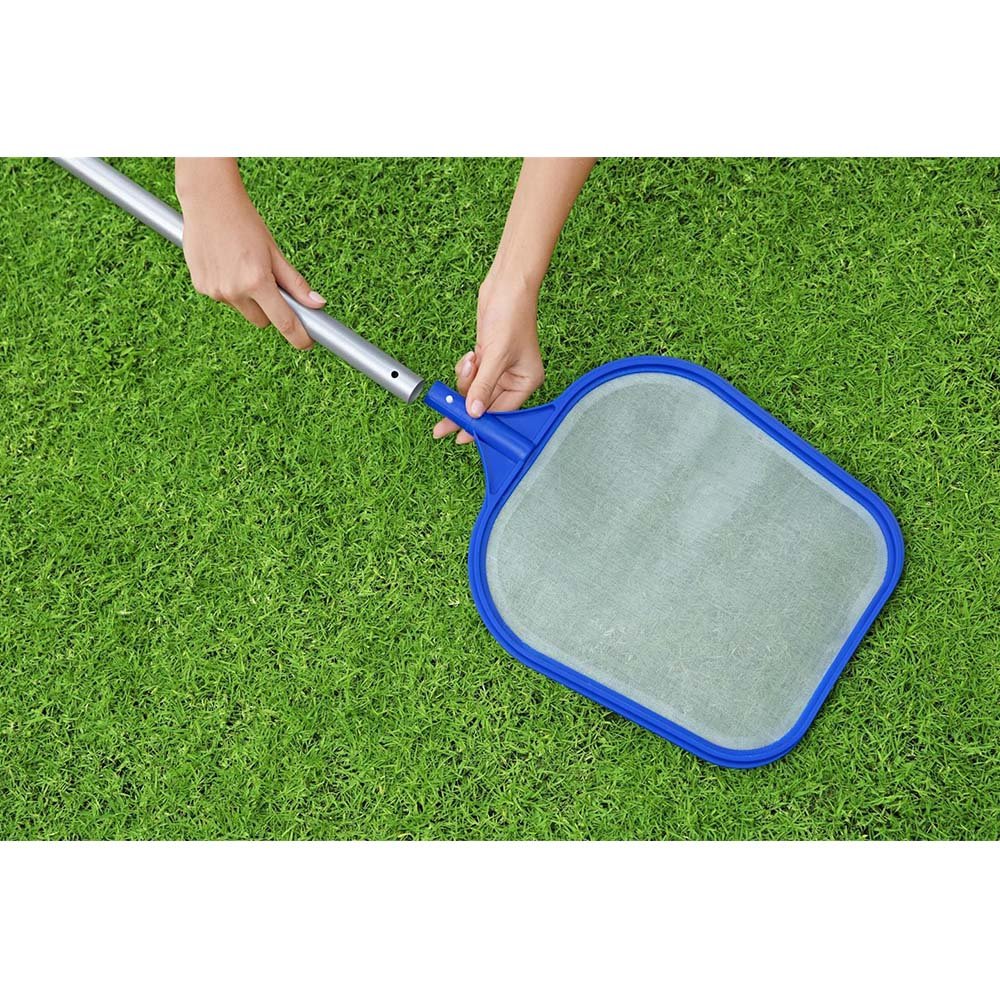 O conjunto de manutenção de piscinas Bestway é ideal para limpeza e manutenção de piscinas acima do solo até 396 cm. Consiste numa pega de alumínio de 167 cm com acessórios de sucção e escumadeira intercambiáveis. O vácuo da piscina é fácil de ligar à pega e requer apenas uma mangueira de jardim convencional para funcionamento - não são necessárias outras ferramentas. O lixo solto é recolhido num contentor de lixo amovível e reutilizável. O escumador tem uma rede durável para remover mais sujidade indesejada. Para que possa desfrutar da sua piscina limpa durante todo o Verão.