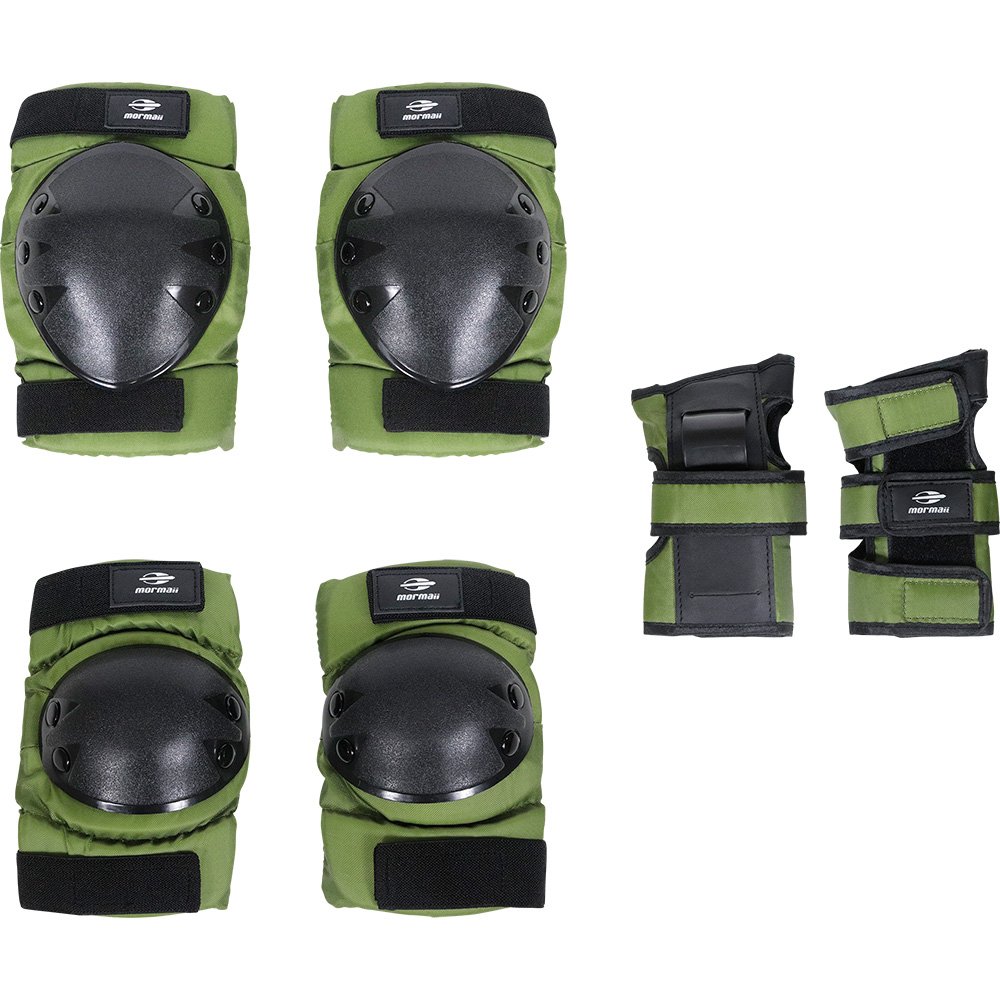 Realizar manobras em alta velocidade ou saltar obstáculos sem um kit de segurança é perigoso e pode lesionar seriamente o atleta, por isso recomendamos o uso de acessórios de proteção durante a pratica de exercícios; Tecido em Poliamida e casquilho em PP; Cotoveleira: 18,5 x 11,5 cm; Joelheira: 24 x 13,25 cm; Munhequeira: 14,75 x 7,5 cm