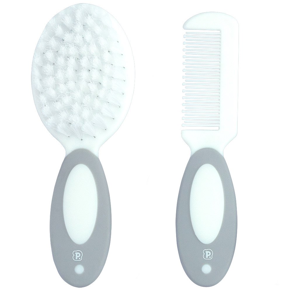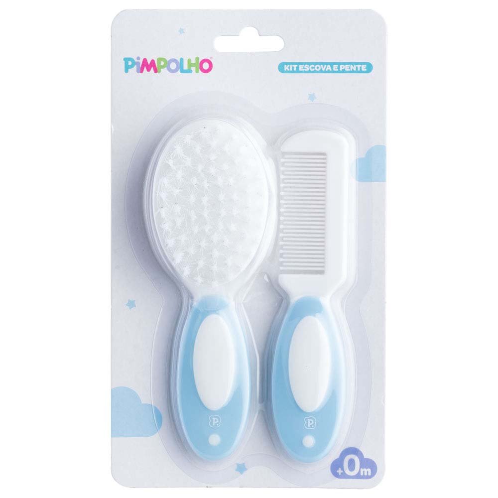 O kit e composto por uma escova de cerdas macias e um pente que auxiliam os cuidados do bebê na primeira infancia. Seu cabo e emborrachado e antiderrapante. Caixa com 12 Unidades, sendo: 4 Rosa, 4 Azul e 4 Cinza.
